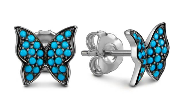 Серьги пусеты из белого золота с фианитами "Бабочки" (057948)