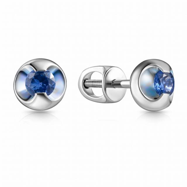 Серьги пусеты из белого золота с сапфирами (047688)