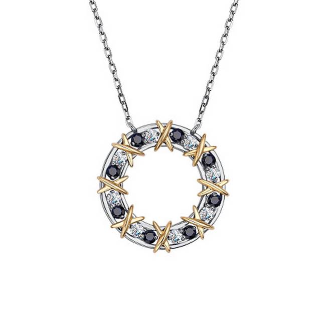 Колье из комбинированного золота с бриллиантами и сапфирами (050231)