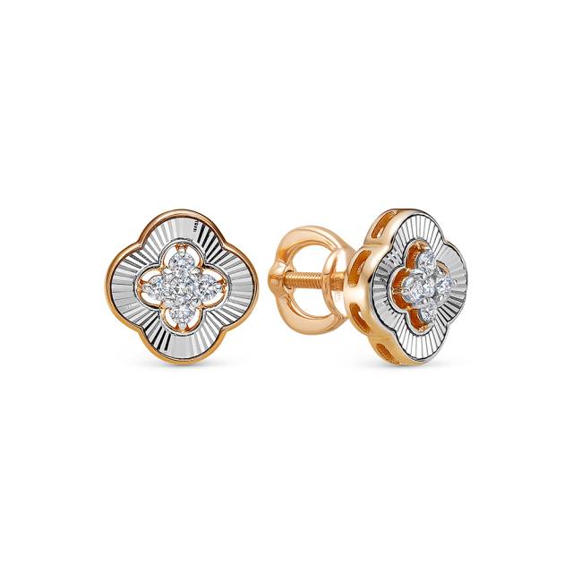 Серьги пусеты из красного золота с бриллиантами (061104)