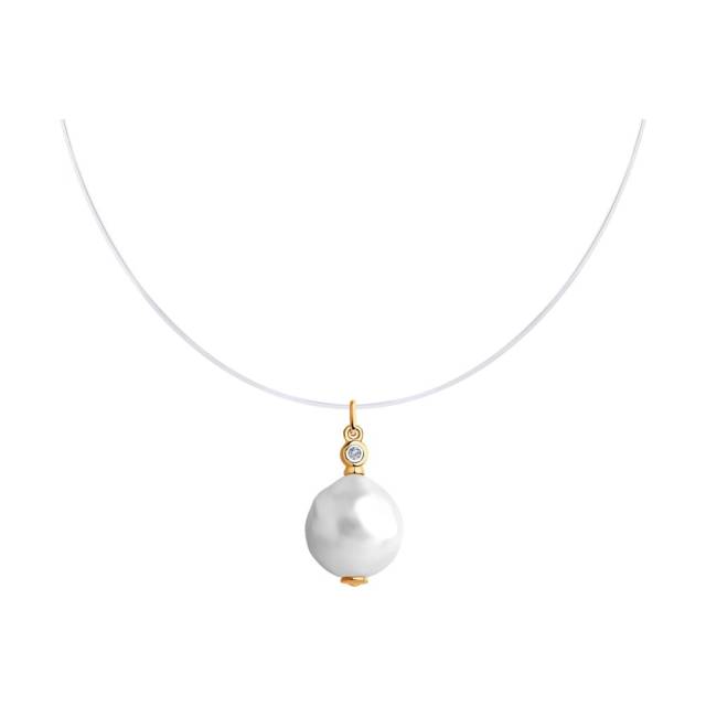 Колье из красного золота с бриллиантом и жемчугом на леске (045088)