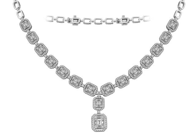 Кулон из белого золота с бриллиантами и драгоценными камнями (011396)