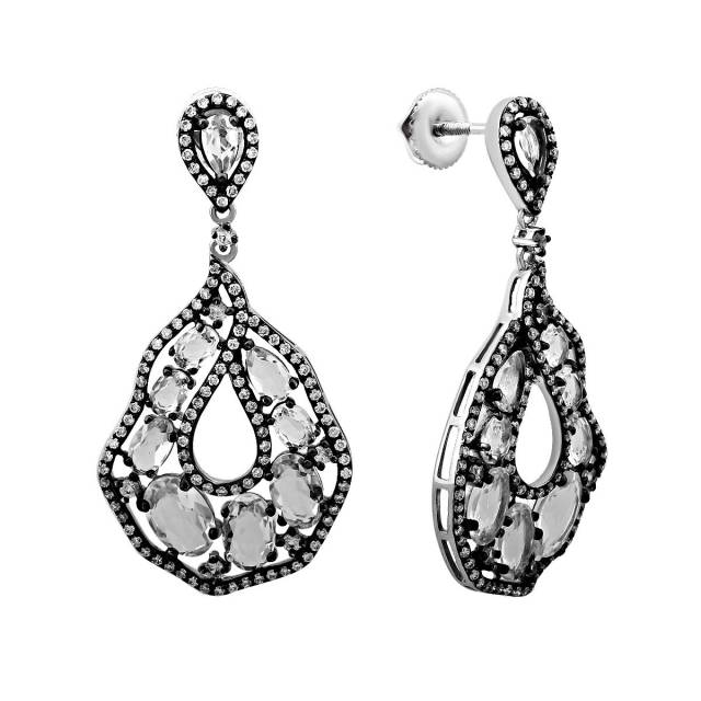 Серьги пусеты из белого золота с бриллиантами, бесцветными сапфирами и топазами (003979)
