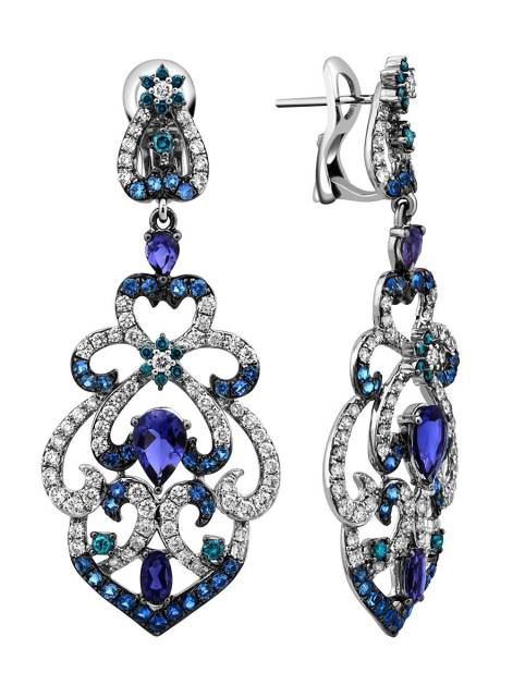 Серьги из белого золота с бриллиантами и драгоценными камнями (011398)