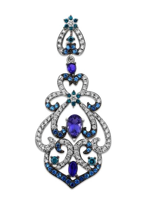 Кулон из белого золота с бриллиантами и драгоценными камнями (011396)