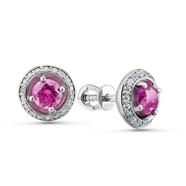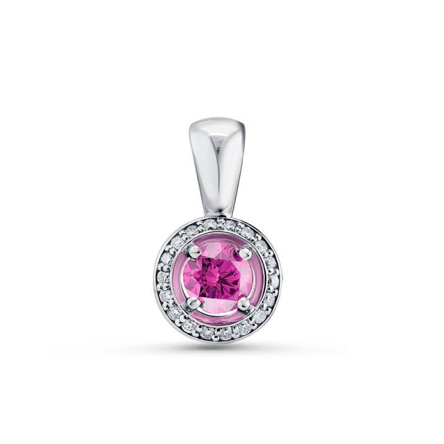 Кулон из белого золота с бриллиантами и розовым сапфиром (063762)