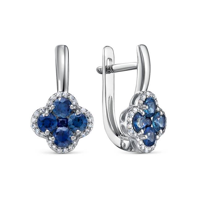 Серьги из белого золота с бриллиантами и сапфирами (055230)