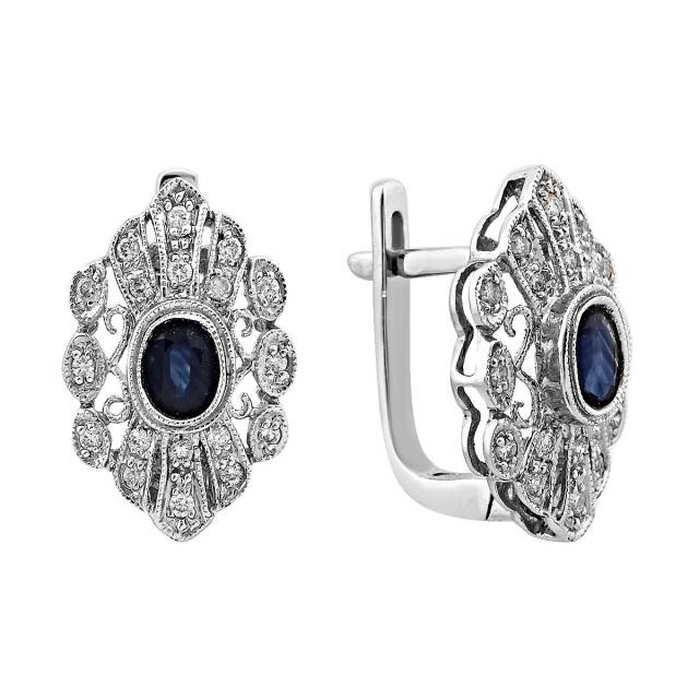Серьги из белого золота с бриллиантами и сапфирами (018223)