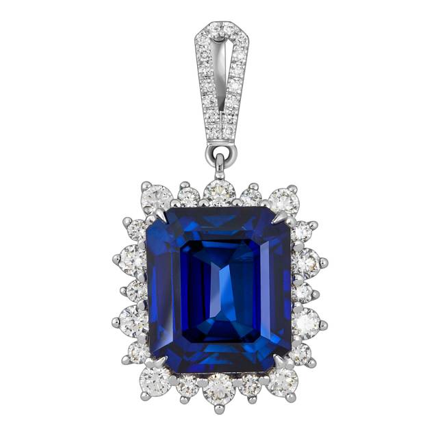 Кулон из белого золота с бриллиантами и сапфиром (049238)