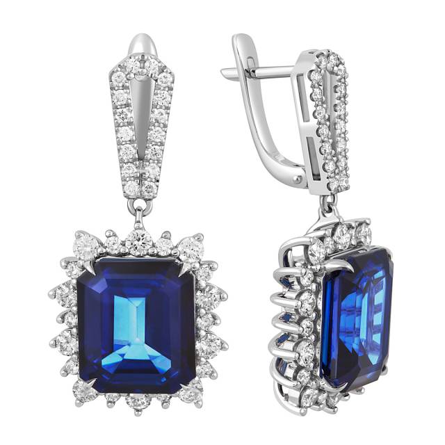 Серьги из белого золота с бриллиантами и сапфирами (047975)