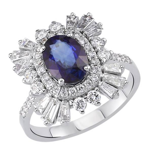 Кольцо из белого золота с бриллиантами и сапфиром (054591)