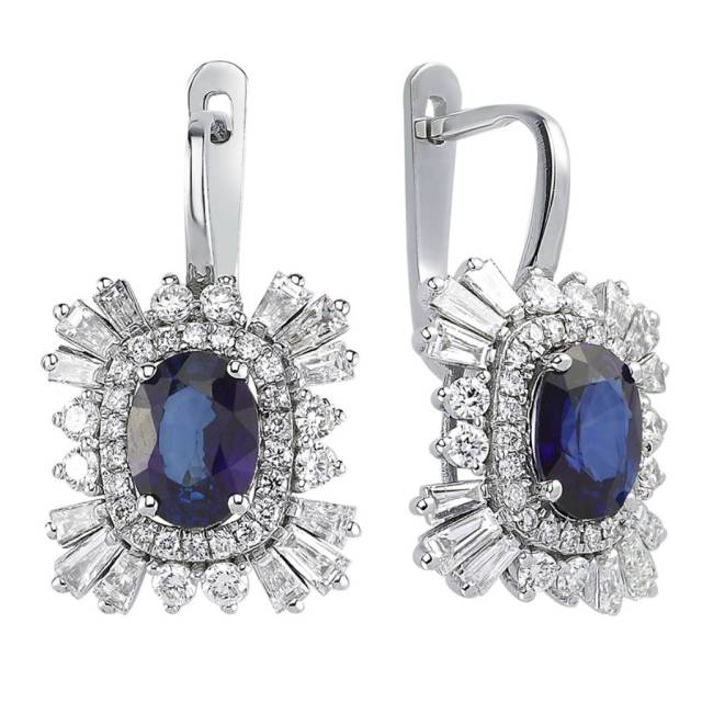 Серьги из белого золота с бриллиантами и сапфирами (054590)