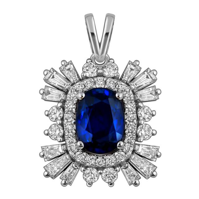 Кулон из белого золота с бриллиантами и сапфирами (055678)