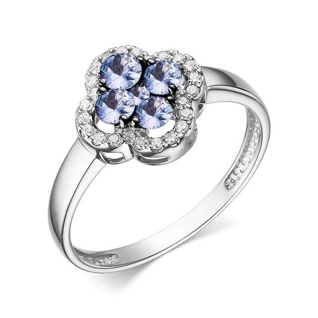 Кольцо из белого золота с бриллиантами и танзанитами (059062)