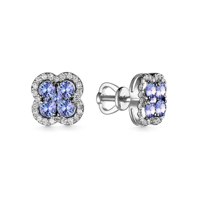 Серьги пусеты из белого золота с бриллиантами и танзанитами (059063)