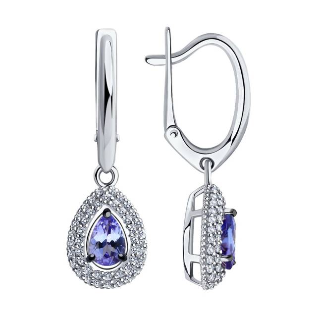 Серьги из белого золота с бриллиантами и танзанитами (043904)