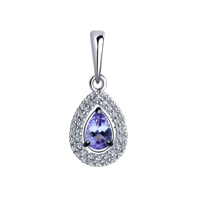 Кулон из белого золота с бриллиантами и танзанитом (043905)