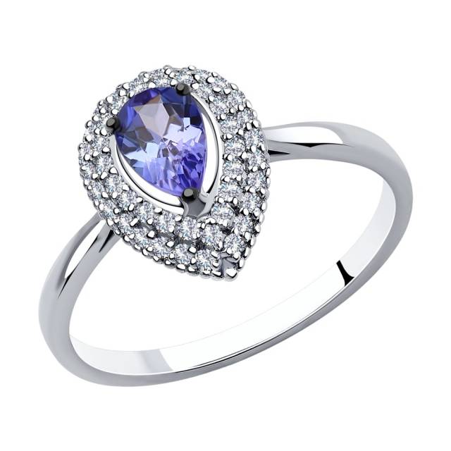 Кольцо из белого золота с бриллиантами и танзанитом (043981)