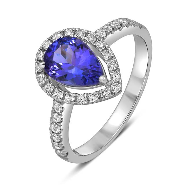 Кольцо из белого золота с бриллиантами и танзанитом (053764)