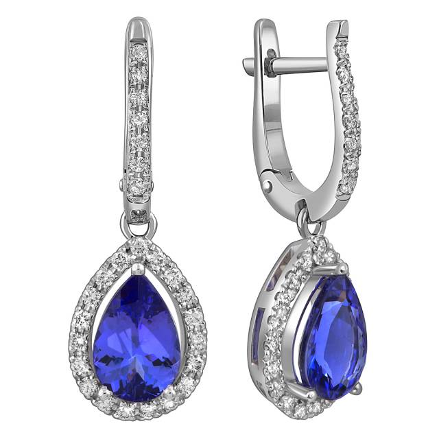 Серьги из белого золота с бриллиантами и танзанитами (053765)