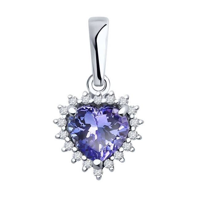 Кулон из белого золота с бриллиантами и танзанитом "Сердце" (059051)