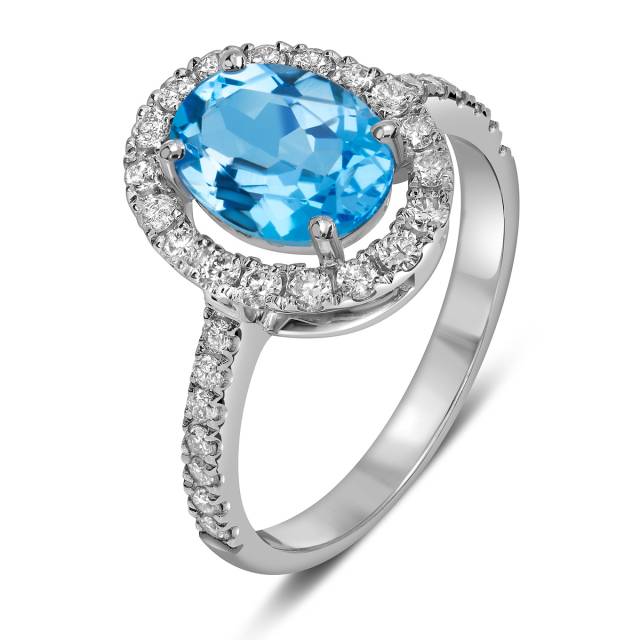 Кольцо из белого золота с бриллиантами и топазом (060383)