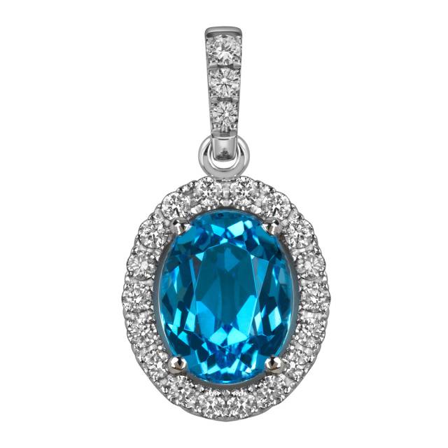 Кулон из белого золота с бриллиантами и топазом (060155)