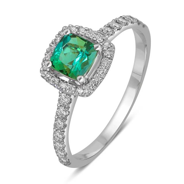 Кольцо из белого золота с бриллиантами и турмалином (059487)