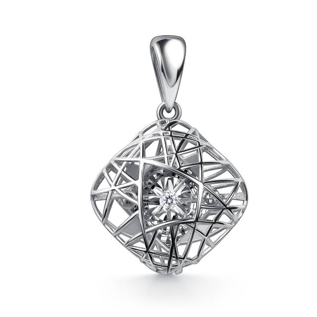 Кулон из белого золота с бриллиантами и сапфиром (048744)