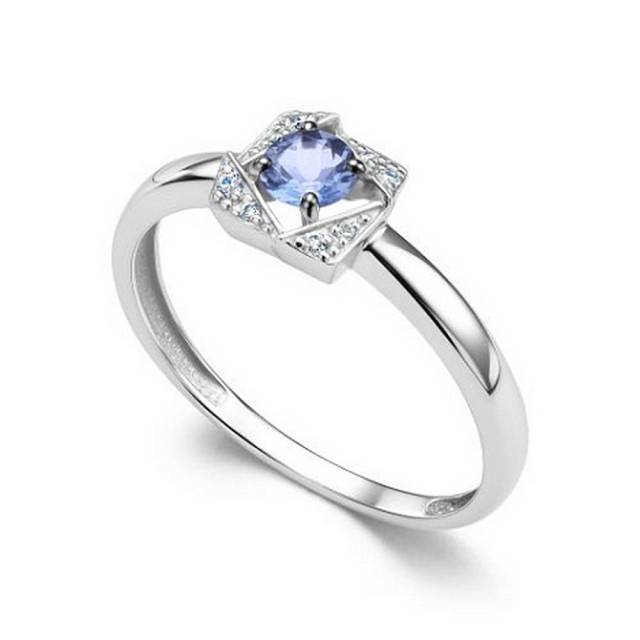 Кольцо из белого золота с танзанитом и бриллиантами (061187)