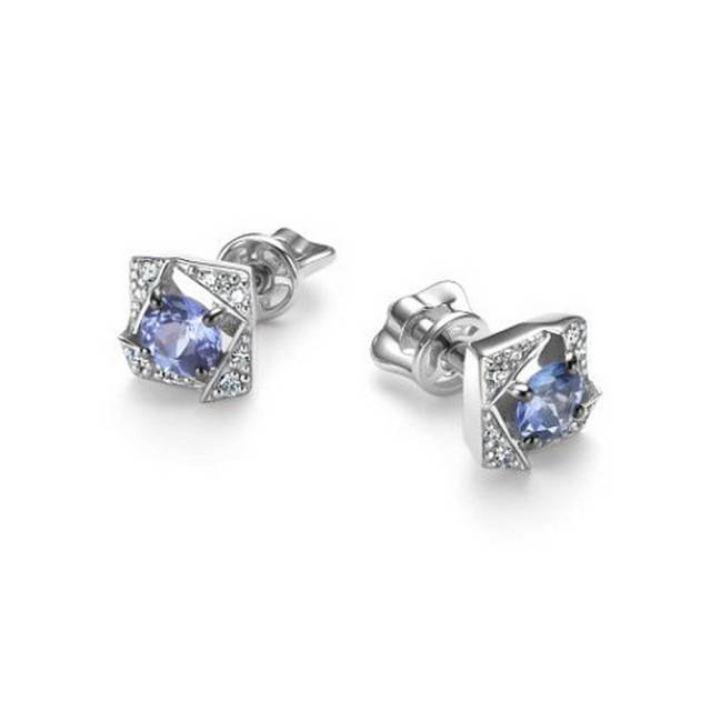 Серьги пусеты из белого золота с танзанитами и бриллиантами (061190)