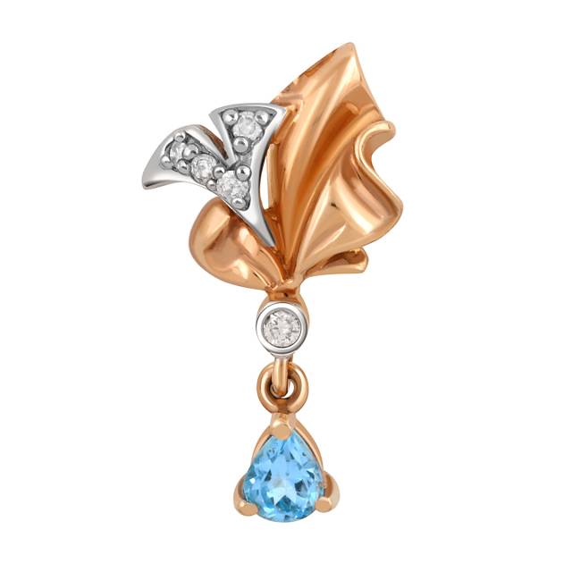 Кулон из комбинированного золота с бриллиантами и топазом (009710)