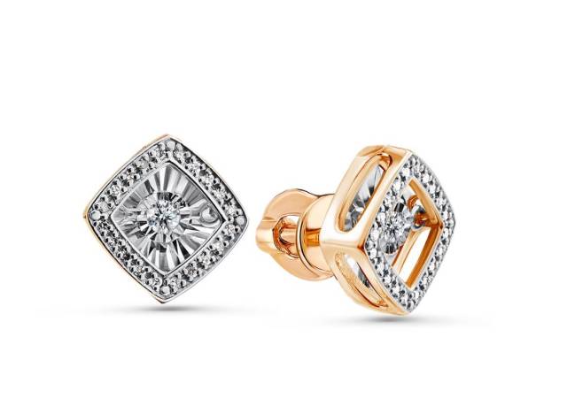 Серьги пусеты из красного золота с бриллиантами (052719)