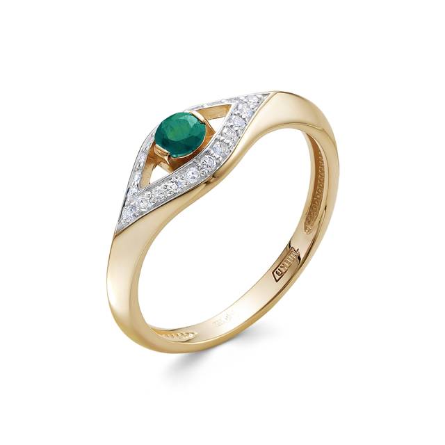 Кольцо из красного золота с бриллиантами и изумрудом (053054)