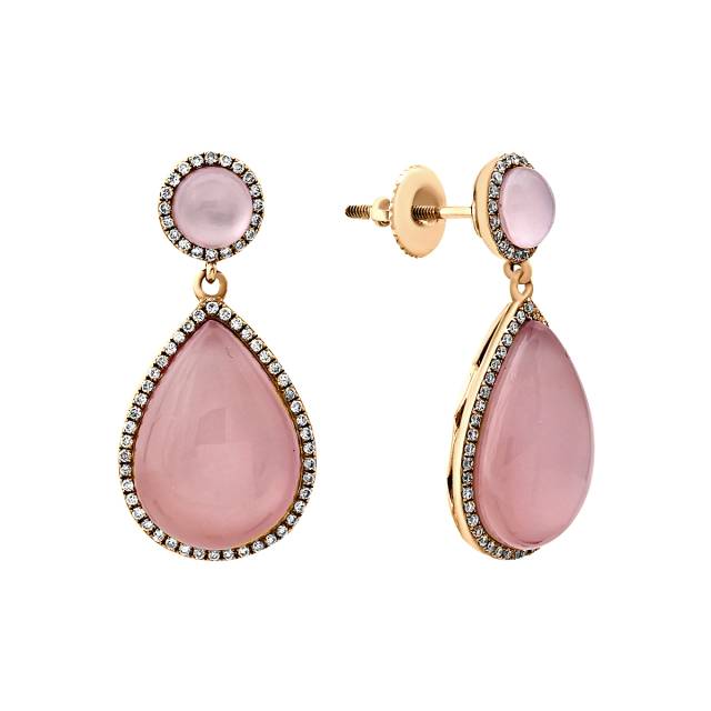 Серьги пусеты из красного золота с бриллиантами и кварцем (003958)