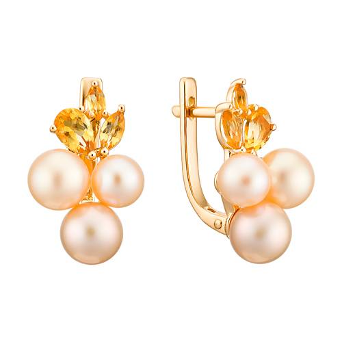 Серьги из красного золота с цитринами и жемчугом (041515)