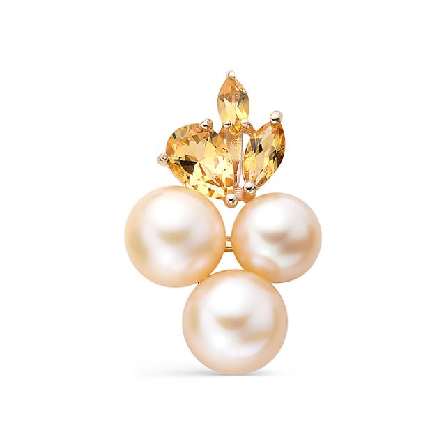 Кулон из красного золота с цитринами и жемчугом (042497)