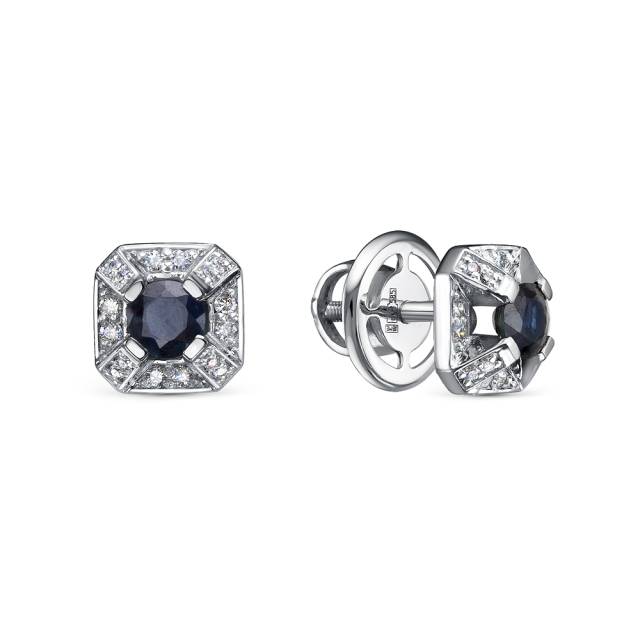 Серьги пусеты из платины с бриллиантами и сапфирами (058385)