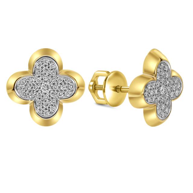 Серьги пусеты из жёлтого золота с бриллиантами (061061)