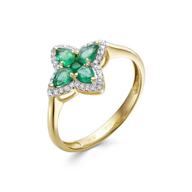 Кольцо из жёлтого золота с бриллиантами и изумрудами (055681)