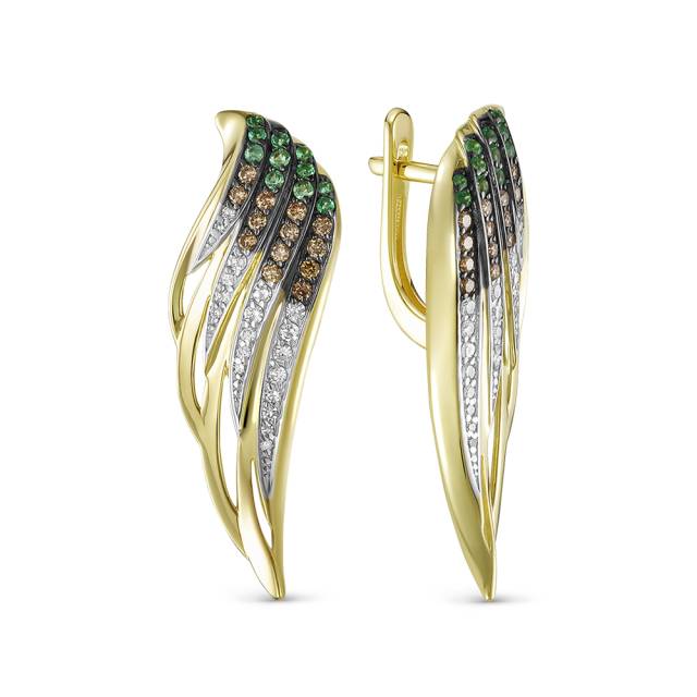 Серьги из жёлтого золота с бриллиантами и изумрудами (059590)