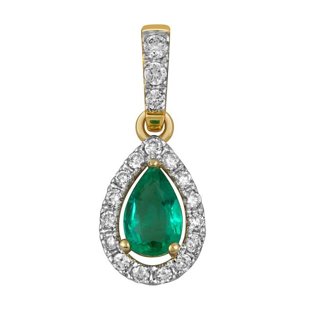 Кулон из жёлтого золота с бриллиантами и изумрудом (052432)