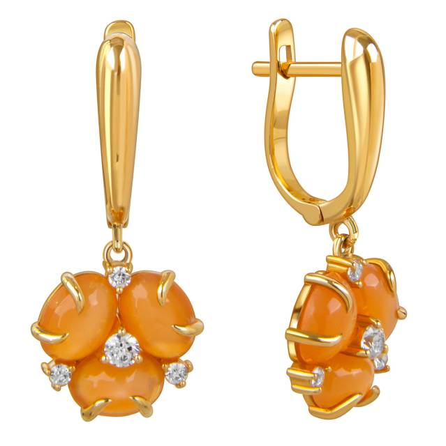 Серьги из жёлтого золота с кварцами и фианитами (057909)