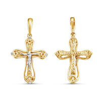 Кулон крест из комбинированного золота с бриллиантами (054692)