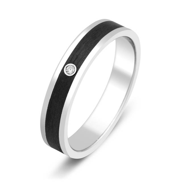 Обручальное кольцо из белого золота с бриллиантом и карбоном (014847)