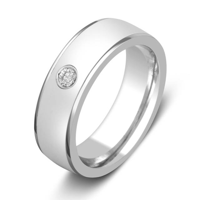 Обручальное кольцо из белого золота с бриллиантом (026002)