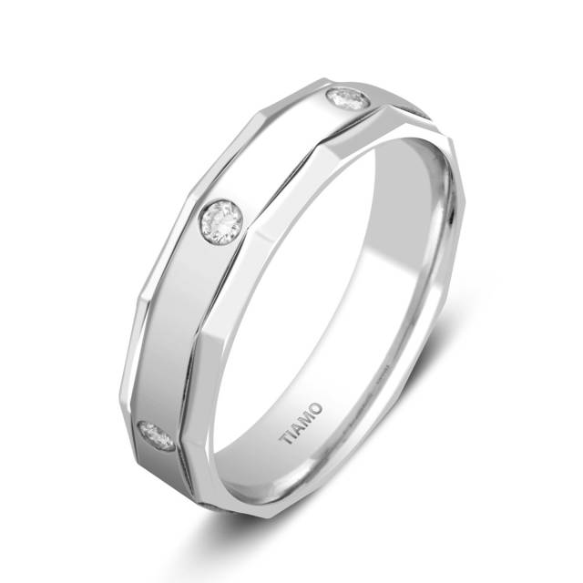 Обручальное кольцо из белого золота с бриллиантами TIAMO (000102)