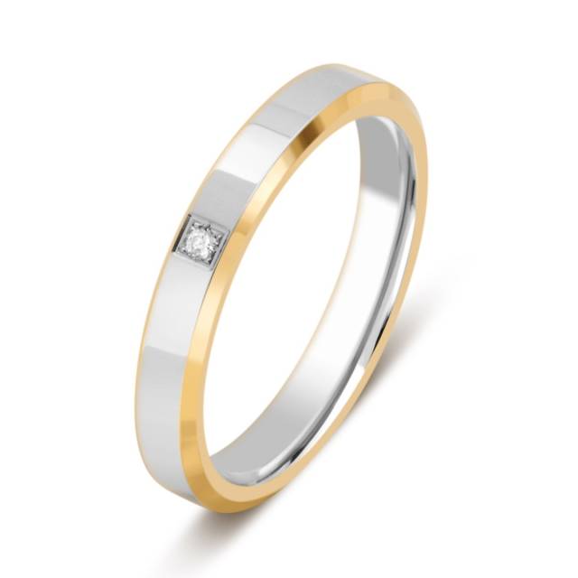 Обручальное кольцо из комбинированного золота с бриллиантом (028728)