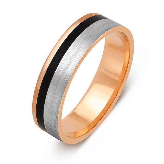 Обручальное кольцо из комбинированного золота с керамикой (051808)