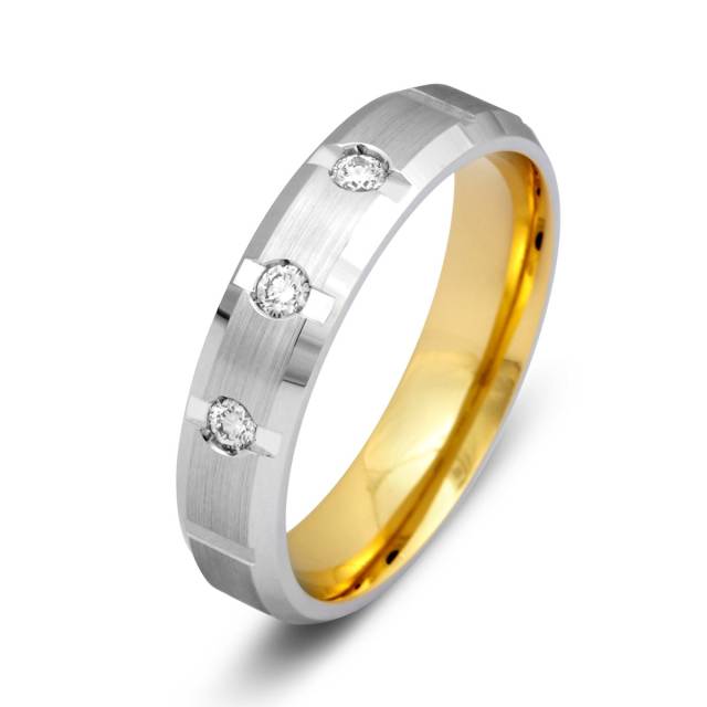 Обручальное кольцо из комбинированного золота с бриллиантами Tiamo (001303)